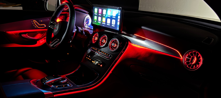 Nos installations transforment votre habitacle en créant une ambiance unique et raffinée, avec la possibilité de choisir vos couleurs et vos effets lumineux selon vos envies.